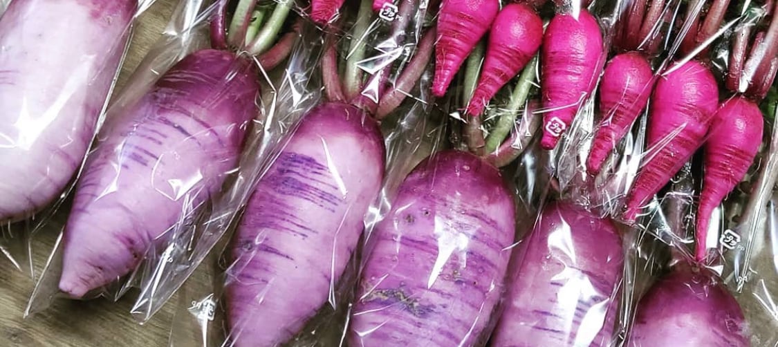 廃棄となる商品の京むらさき大根や
